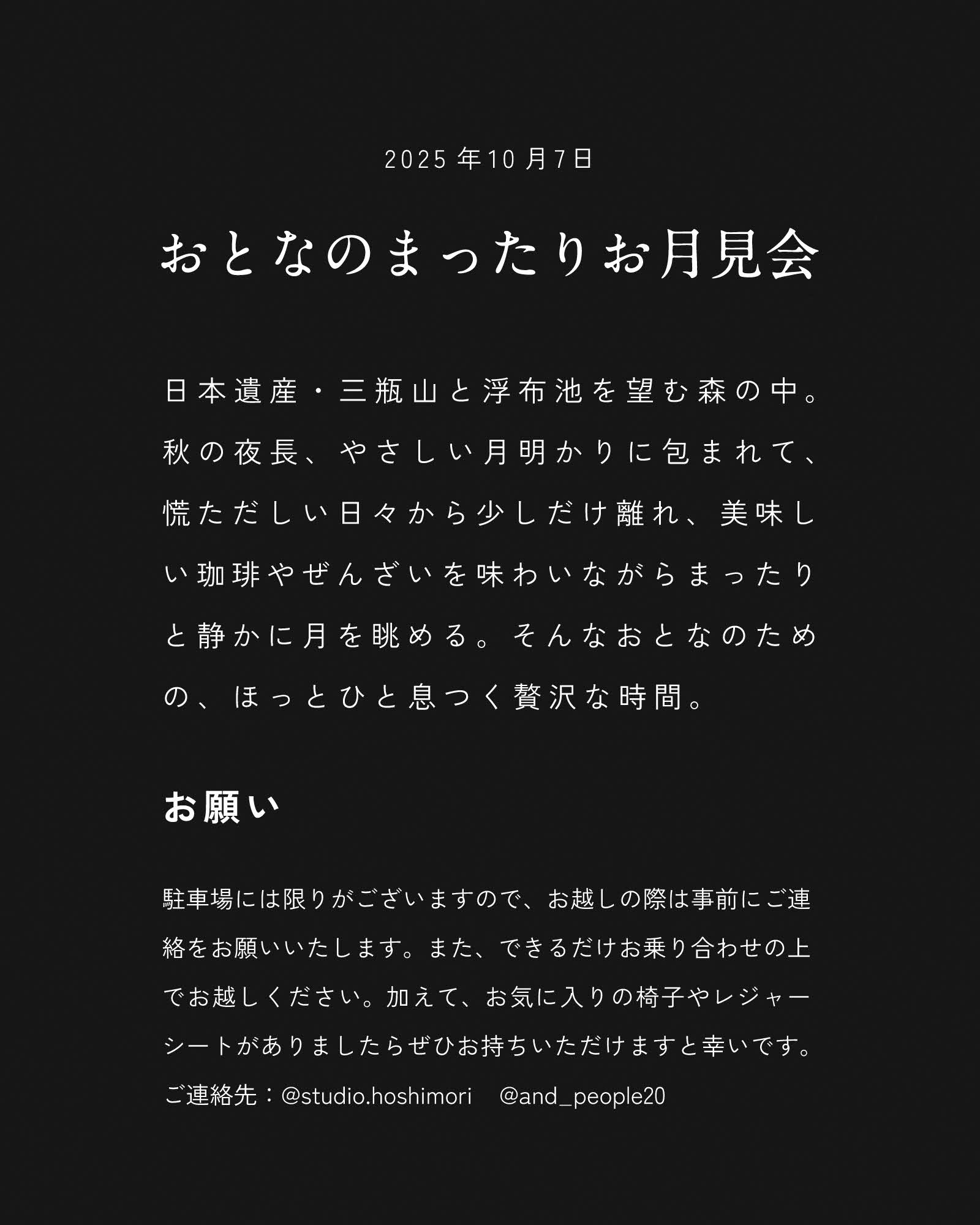 美味しい珈琲やぜんざいを味わいながらまったりと静かに月を眺める。