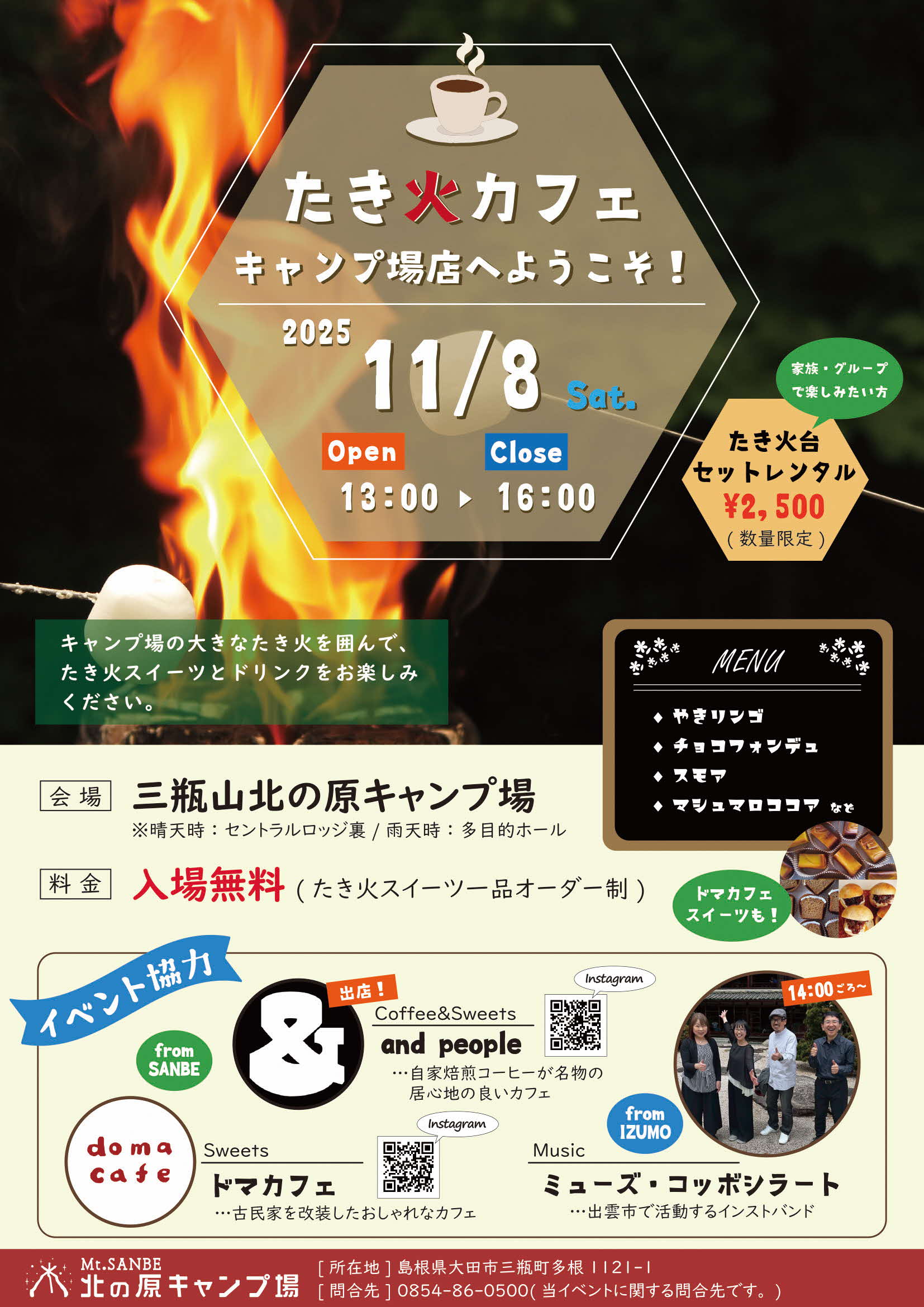 入場無料(たき火スイーツ一品オーダー制)