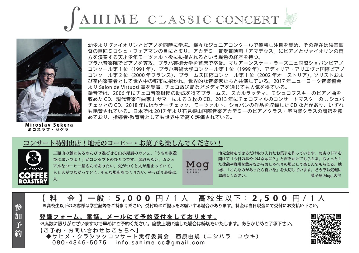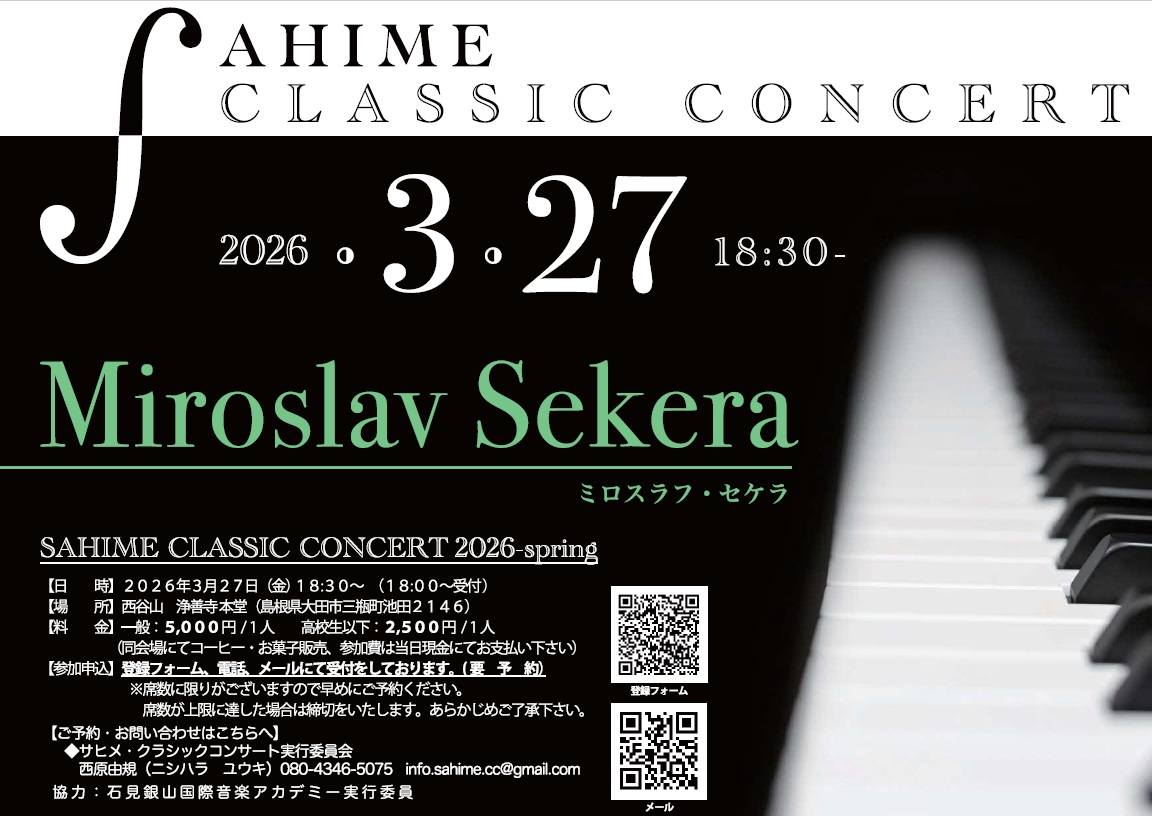 演者は、2017年より石見銀山国際音楽アカデミーのピアノクラス・室内楽クラスの講師を務めており、