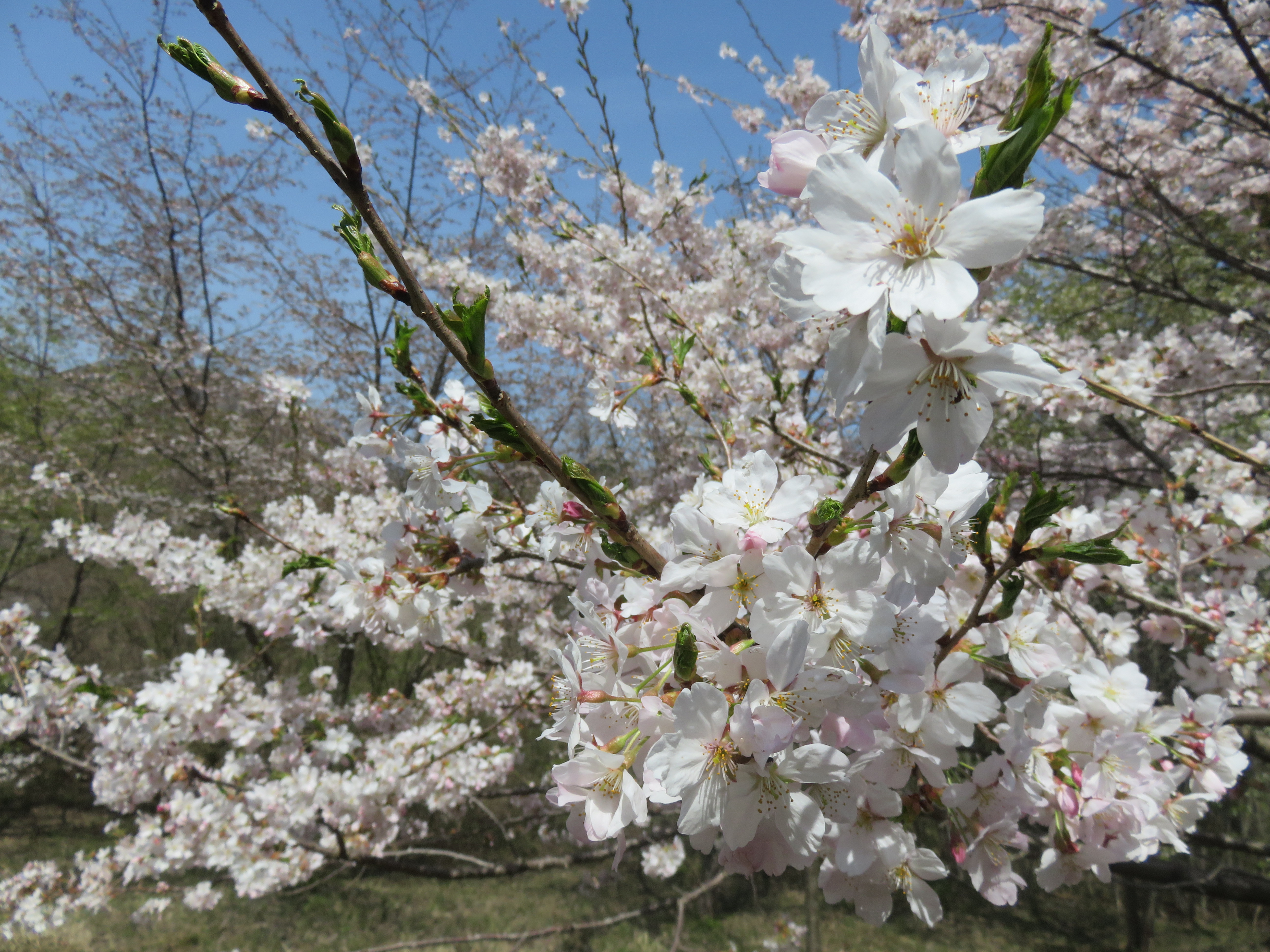 4月中旬くらいが見ごろで江戸彼岸桜、山桜などいろいろな種類の6500本の桜が次々に花を咲かせます。