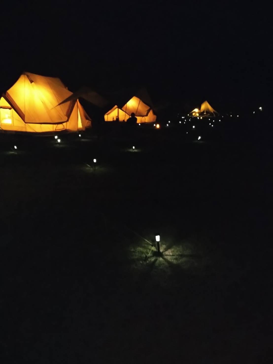 写真は夜のテントの風景。